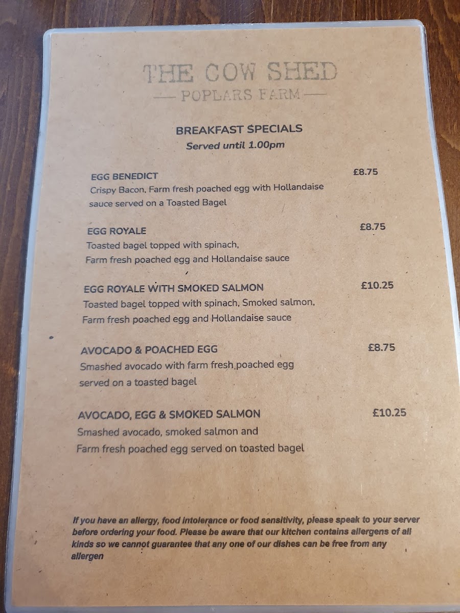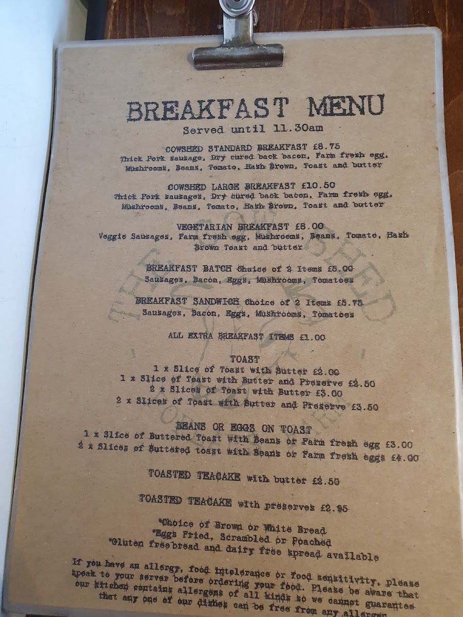 The menu fits naturally with the atmosphere of The Cow Shed—a tidy, friendly café where food feels fresh and straightforward, served with care. It’s a reliable place to enjoy a quiet moment with good coffee or a simple, well-prepared meal throughout the day.